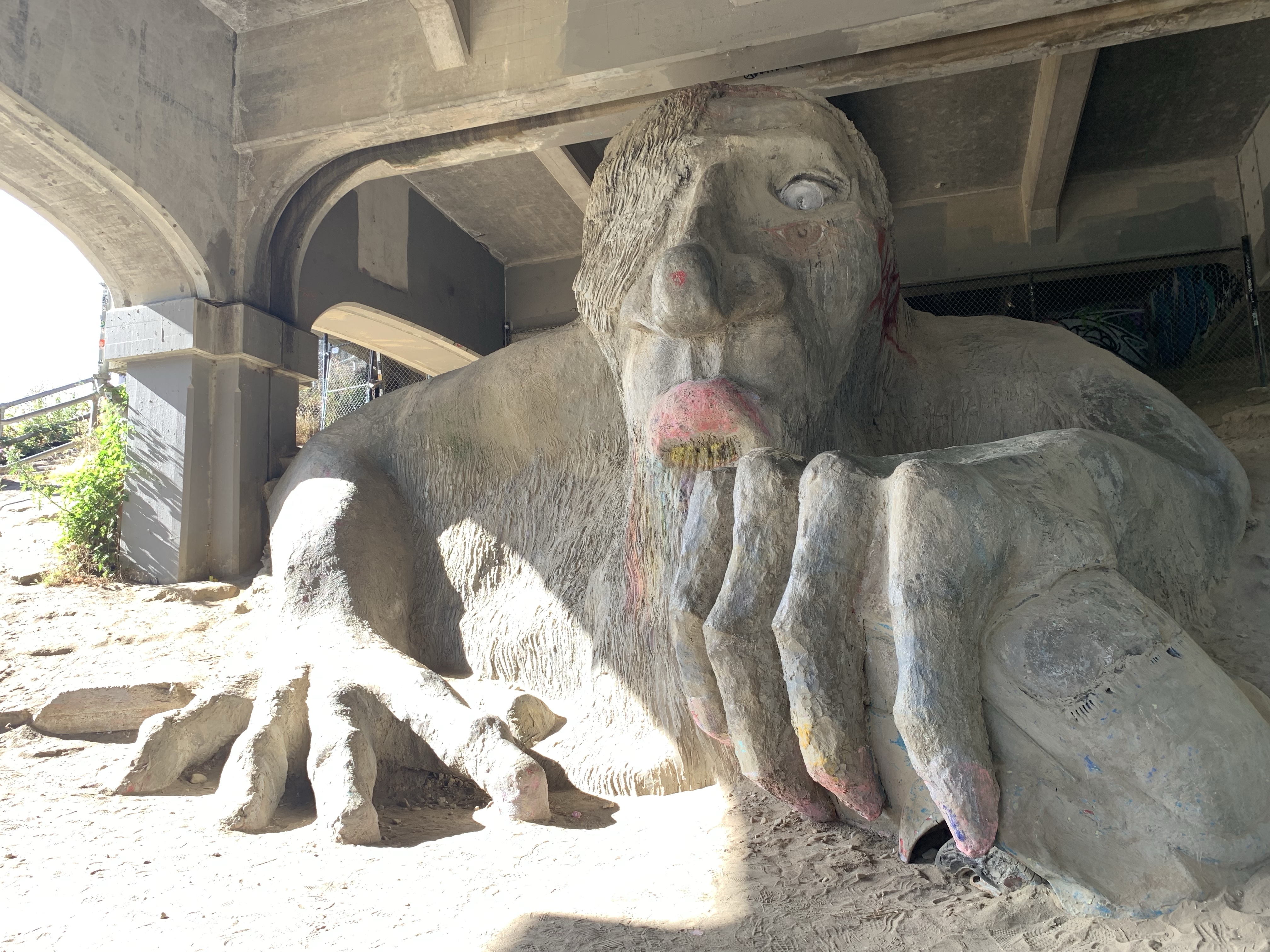 In Seattle, are bridges. Not as many bridges but still bridges. And under those bridges live trolls. Not as many trolls, maybe just the one. And he crumples up small toy cars, brings smile to the faces of strangers, waiting long lines, for photos, for food, for buses, for everything it seems here. The troll guards a community garden, in a neighborhood that trellises around a highway corner. In that garden blooms frazzled pink and orange poppies and gigantic lone alliums, somewhat late season. Hovering the alliums, buzz bees. The troll listens to the playful buzzy bees, in the flowers, in the garden, in that neighborhood from beneath the bridge in Seattle.
